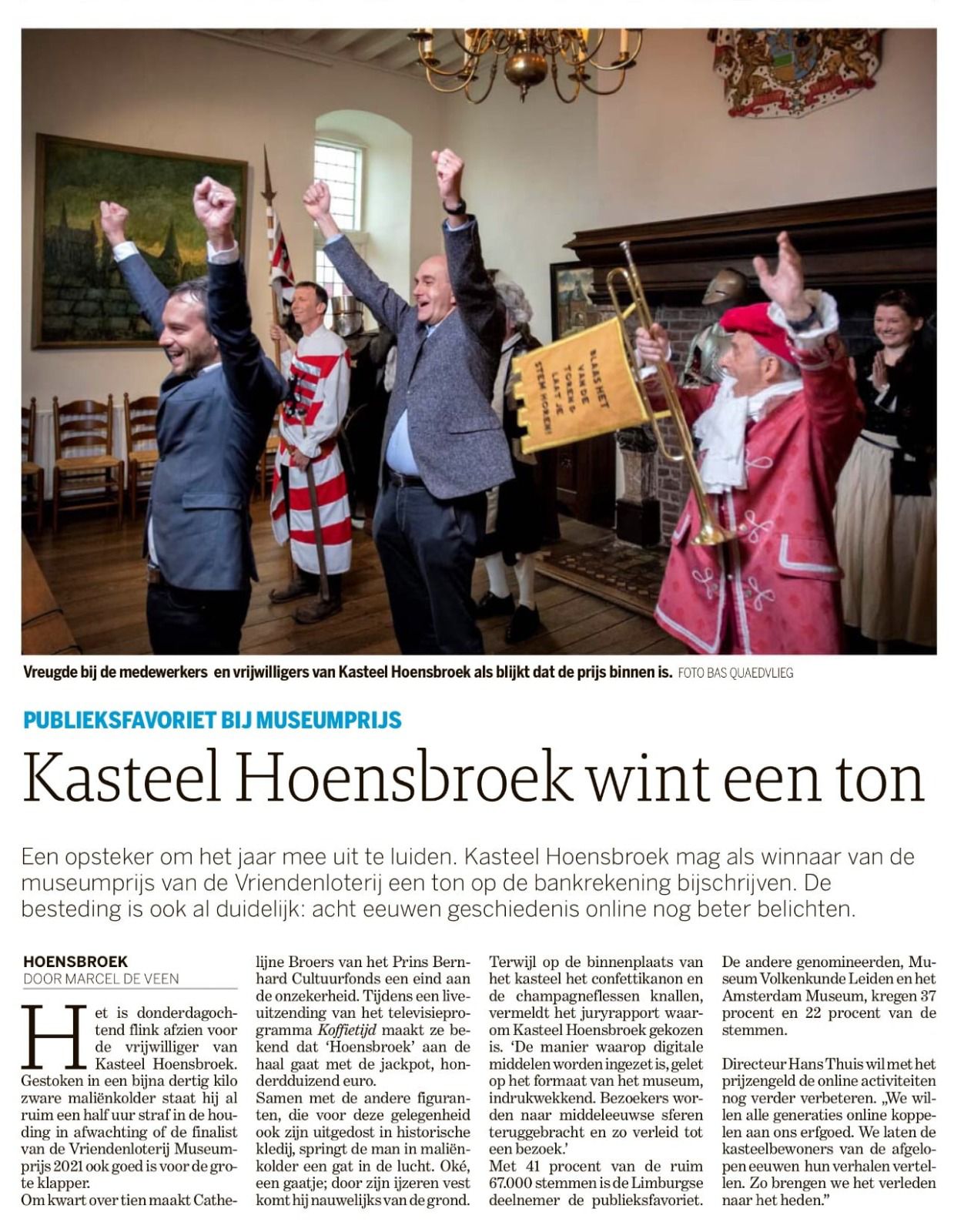 Sinds twee jaar verzorgt Pretty in Pink Publicity de publiciteit rondom de bekendmaking van de nominaties en de winnaar van de Vriendenloterij Museumprijs die de Vriendenloterij samen met het Prins Bernhard Cultuurfonds uitreikt. De prijs is de grootste publieksprijs voor musea in Nederland. De winnaars waarvoor wij de publiciteit mochten verzorgen waren Het Scheepvaartmuseum in 2022 en Kasteel Hoensbroek in 2021. Er stonden artikelen in de Volkskrant, Het Parool, het Limburgs Dagblad, er werd over de winnaars ook bericht op RTL 4, het ANP radionieuws, Radio 1 en diverse online media.